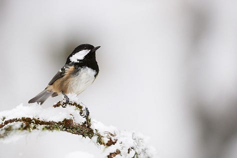 While for Thomas Hardy a bleak winter’s day was momentarily enlivened by the ‘ecstatic caroling’ of a thrush, for me it was the soft thump of nesting blue tits animating the tiny birdhouse in my garden, incongruous with the freshly settled snow.