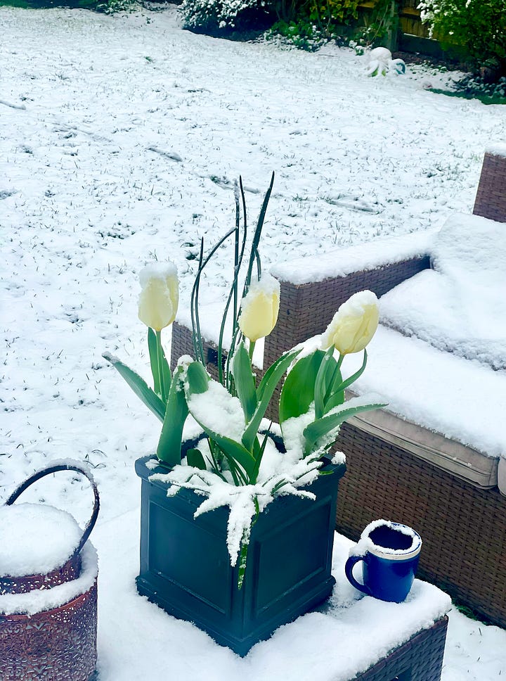 But then again, snow itself is known to fall out of sync with the seasonal rhythms of life, as a few years ago in the same garden: